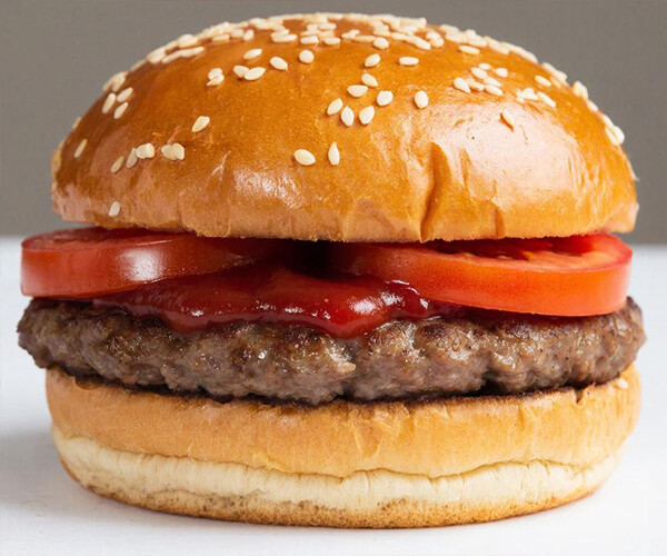 Нежная булочка с кунжутом, Говяжья котлета приготовленная на гриле по авторскому рецепту, Соус «Красный», Помидоры.